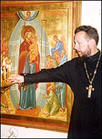 ...Прощаясь, отец Владимир показал мне икону, которая ему по-особому дорога. Икона Божией Матери "Всех скорбящих Радость", укрепленная на Царских Вратах храма.