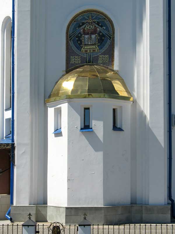 Мозаичная икона Божьей Матери над южным входом в храм.