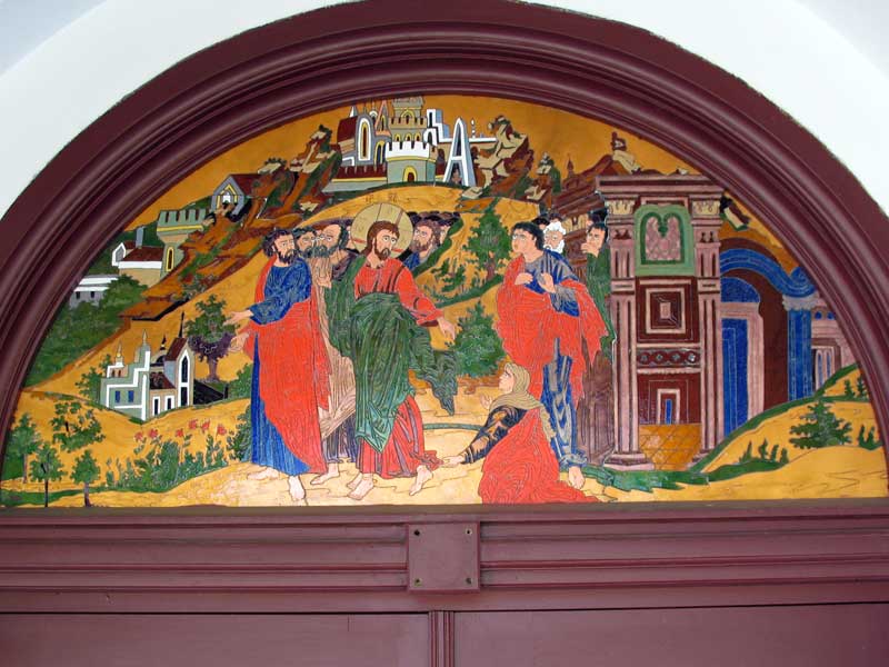 Икона, непосредственно над дверями с северной стороны: исцеление жены кровоточивой.