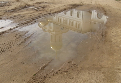 Рада за вас, что вы посетили такие необыкновенные святые места. А отражение храма в луже на фото очень оригинально.