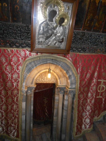 В величественный храм ведут несоразмерные храму маленькие двери. Чтобы войти в него, нужно поклониться. Эти двери так и называют - «Врата смирения». Большой портал был заложен христианами во времена мусульманского владычества, когда лихие агаряне дерзали въезжать в храм на лошадях. Теперь без поклона Христу не войдешь. Говорят, мусульмане тут же перестали появляться...