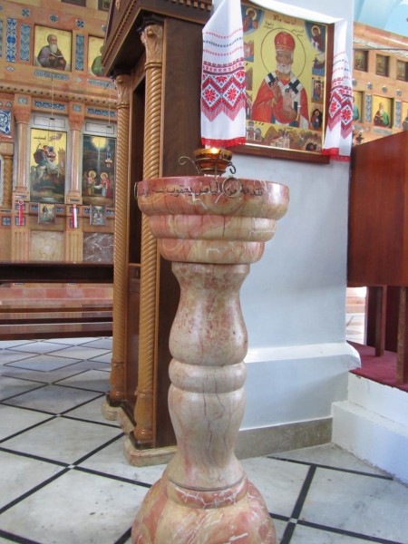 «Русский» святой нас и встретил по-русски, причем в буквальном смысле слова. В храме нам на встречу вышла матушка местного батюшки араба и заговорила с нами на чистом русском языке. Она сама оказалась русской. Мария, так ее зовут, училась на регентском отделении при Санкт-Петербургской семинарии, где познакомилась с семинаристом из Палестины арабом, если не ошибаюсь, Павлом. Они поженились, в 2004 году закончили учебу в городе на Неве и отправились служить на родину православного араба-батюшки в Бейт-Джалу. Теперь матушка Мария радушно принимает своих соотечественников на Святой Земле. После ее поселения в Бейт-Джале это место все больше стали посещать русские паломники. В самом деле, не везде на Святой Земле услышишь рассказ из первых уст на русском языке.