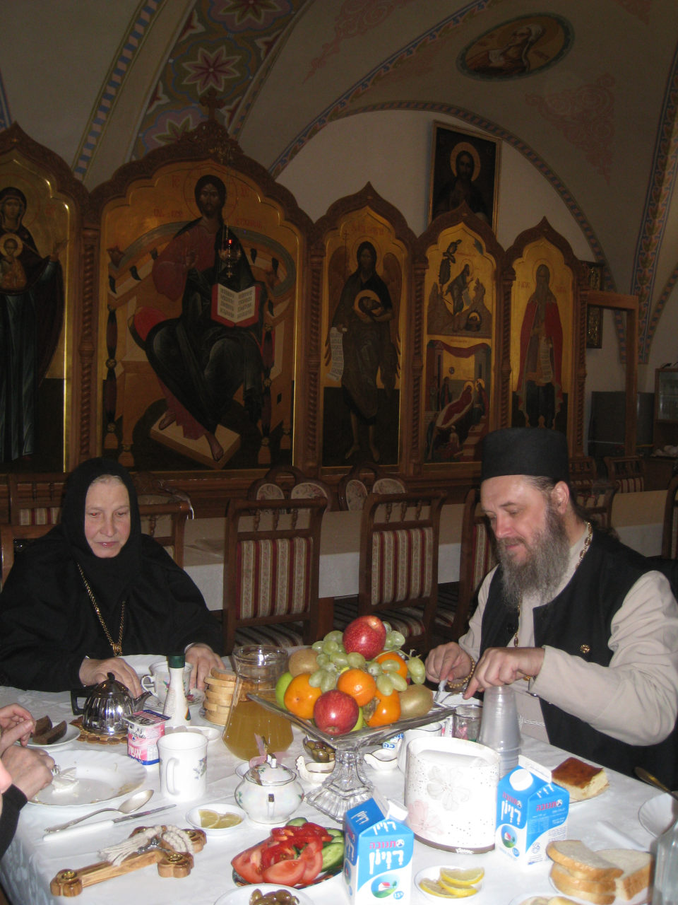 Потом матушка провела нас в трапезную и пригласила к столу. Мы помолились и уютно расселись за большим столом. Матушка села во главе стола, а сестры подали трапезу.