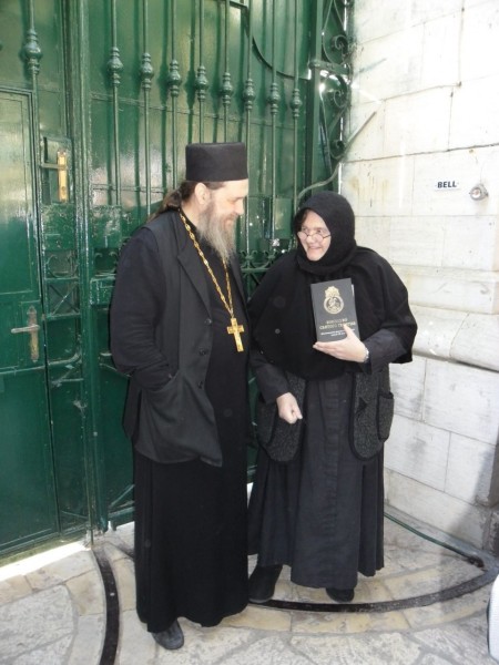 Такой встречи мы, конечно, не ожидали. Только что мы молились в гостях у Симеона Богоприимца, читали акафист, составленный игуменией Таисией и тут же в Гефсиманском саду встречаем инокину с именем Таисия, постриженную в память нашей матушки Таисии, - разве это не леушинское чудо! День назад мы неожиданно для себя открыли местонахождение мощей двух небесных покровителей самой матушки Таисии, а теперь познакомились с инокиней, которая почитает Таисию своей покровительницей. Казалось, что сама матушка Таисия послала нам в утешение свою служку на Святой Земле!
