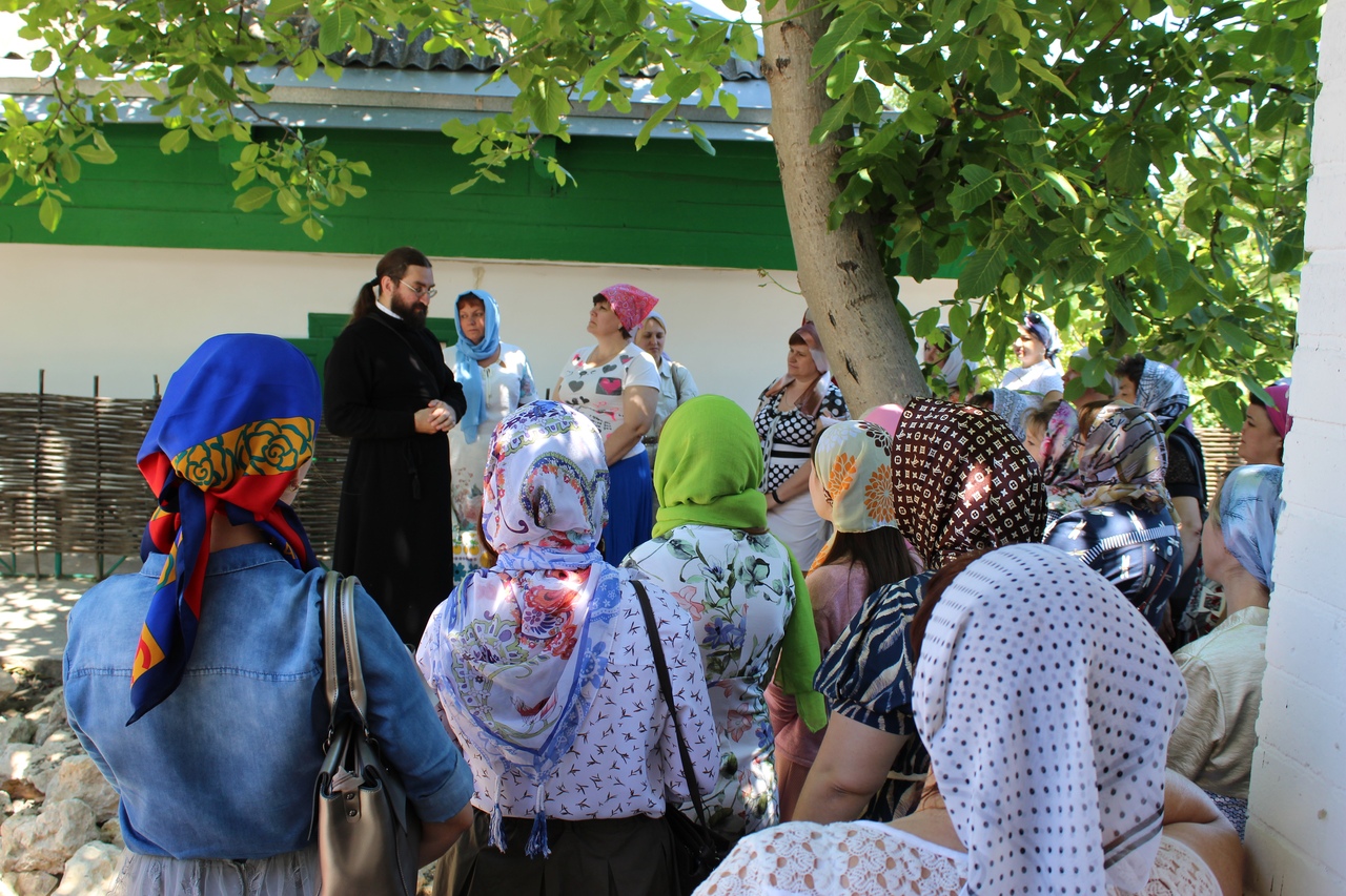 Учителя посетили Всехсвятский храм и часовню на могиле старца Павла. Диакон Георгий Канча провел экскурсию по Старому кладбищу и рассказал о других подвижниках благочестия, связанных с Таганрогм таких как архиепископ Арсений (Смоленец) и митрополит Иосиф (Чернов).